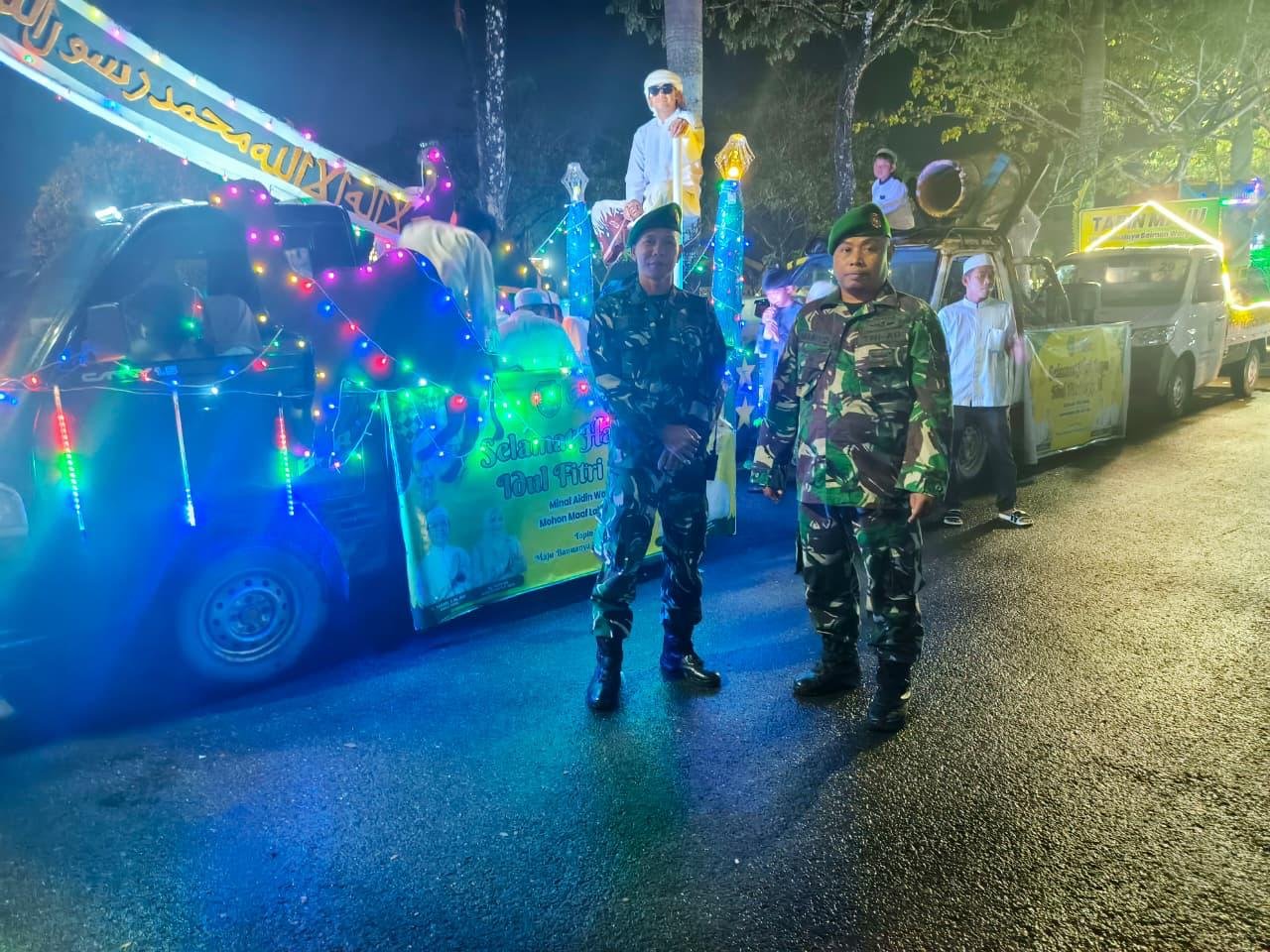Seperti cahaya lampu yang menerangi gelap malam, kehadiran para prajurit menjadi penjaga ketenangan, agar lantunan takbir tetap menggema tanpa gangguan, membawa kedamaian bagi seluruh masyarakat.