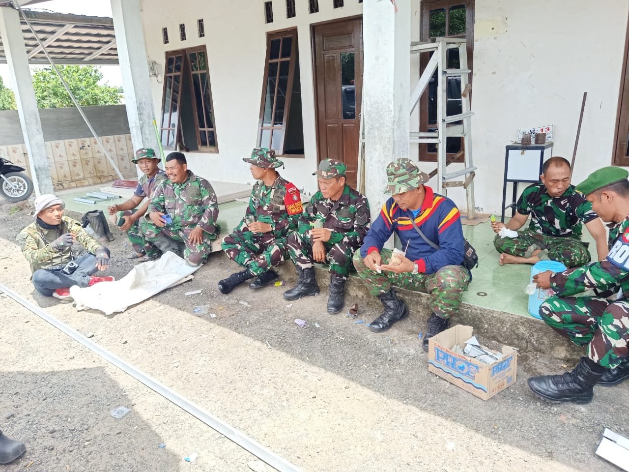 BARITO KUALA – Di bawah langit Desa Tumih, Kecamatan Wanaraya, aroma kopi hitam perlahan menembus hawa siang yang terik. Di antara deru mesin dan debu jalan yang tengah dikeraskan, tampak Letkol Inf Andika Suseno, S.I.P, Komandan Satgas TMMD Ke-126 Kodim 1005/Barito Kuala, duduk bersama prajuritnya. Tak ada jarak, tak ada sekat — hanya tawa ringan dan obrolan sederhana yang menandakan keakraban sejati.