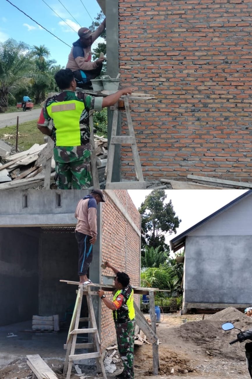 ACEH BARAT – Sebagai wujud kepedulian terhadap masyarakat di wilayah binaannya, Babinsa Koramil 11/Woyla Timur, Koptu Caniago, turut membantu warga melakukan pekerjaan plester rumah di Desa Rambing Pinto, Kecamatan Woyla Timur, Sabtu (17/01/2026).