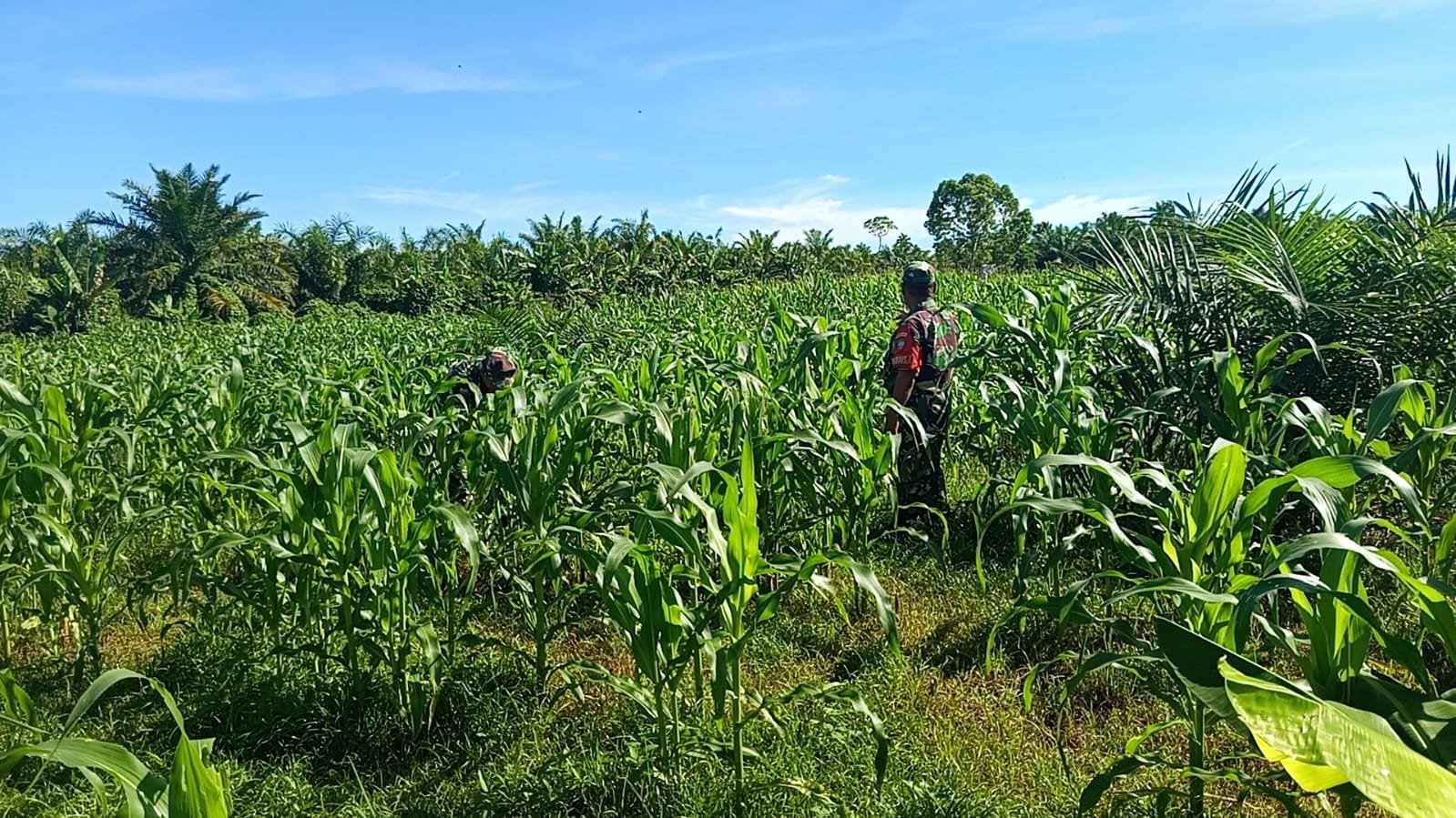 ACEH JAYA – Personel Koramil 06/Teunom bersama Posramil Pasie Raya Kodim 0114/Aceh Jaya melaksanakan kegiatan pemantauan ketahanan pangan dengan melakukan pengecekan langsung terhadap tanaman jagung milik warga yang terdampak serangan hama ulat, Senin (30/3/2026).