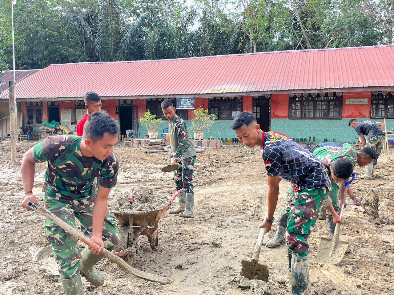 Aceh Tamiang – Prajurit Korem 012/TU berpacu dengan waktu melaksanakan karya bakti pembersihan SDN 2 Rantau Pauh, Kecamatan Rantau, Kabupaten Aceh Tamiang, sebagai bentuk kepedulian TNI terhadap dunia pendidikan dan masyarakat, Selasa (13/01/2026).