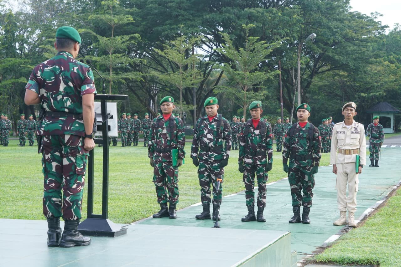 Meulaboh – Korem 012/Teuku Umar (TU) menggelar kegiatan rutin Upacara Bulanan. Bertindak sebagai Inspektur Upacara, Komandan Korem 012/TU Kolonel Inf Benny Rahadian, S.E., M.Han., dengan Dankima Korem 012/TU Kapten Inf S. Irianto Sirait sebagai Komandan Upacara.