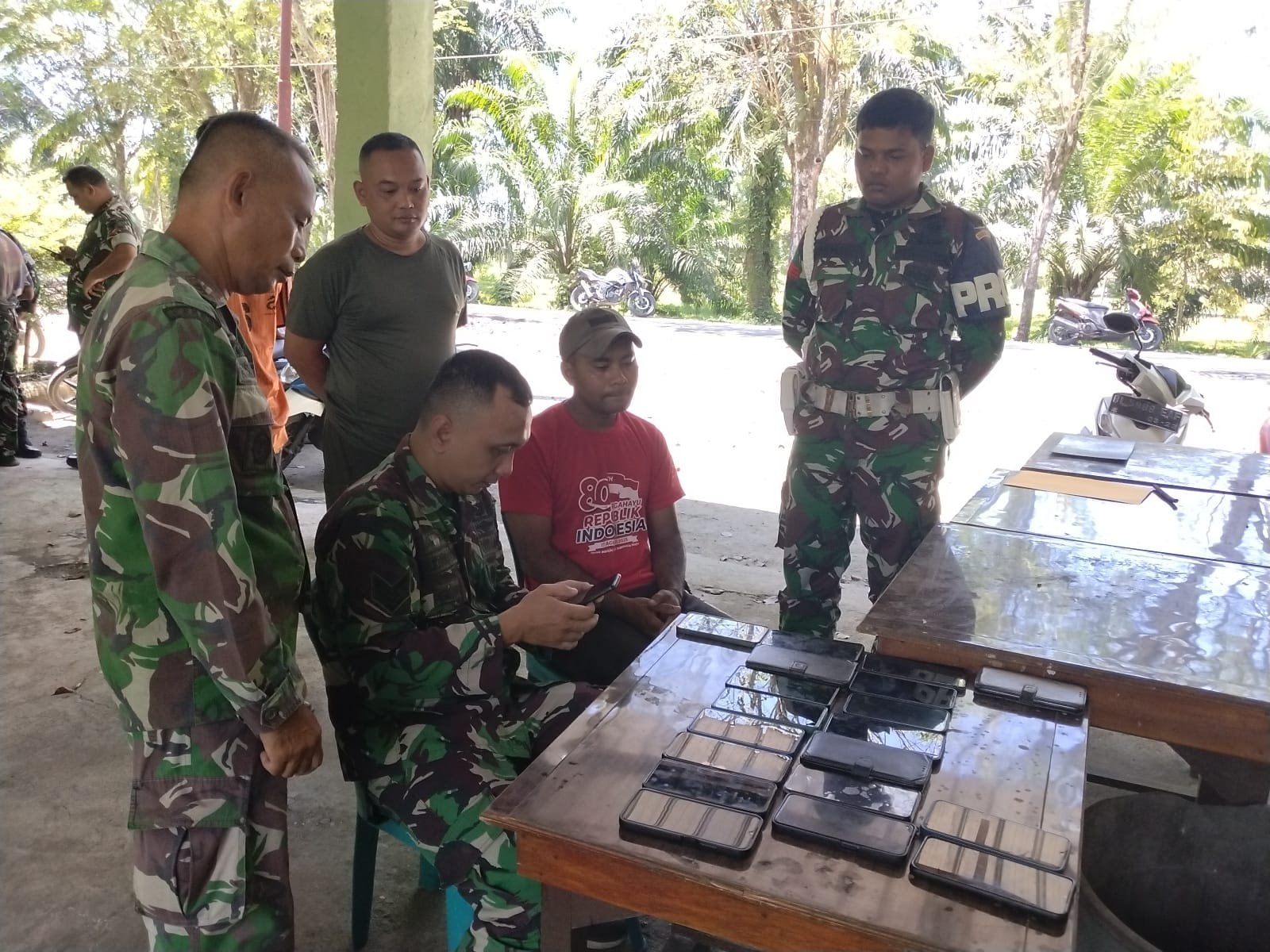 Pemeriksaan HP prajurit dilakukan staf Intel Korem, turut dalam pengawasan Dankima Korem 012/TU dan Pasi Korem 012/TU.(Pr012).