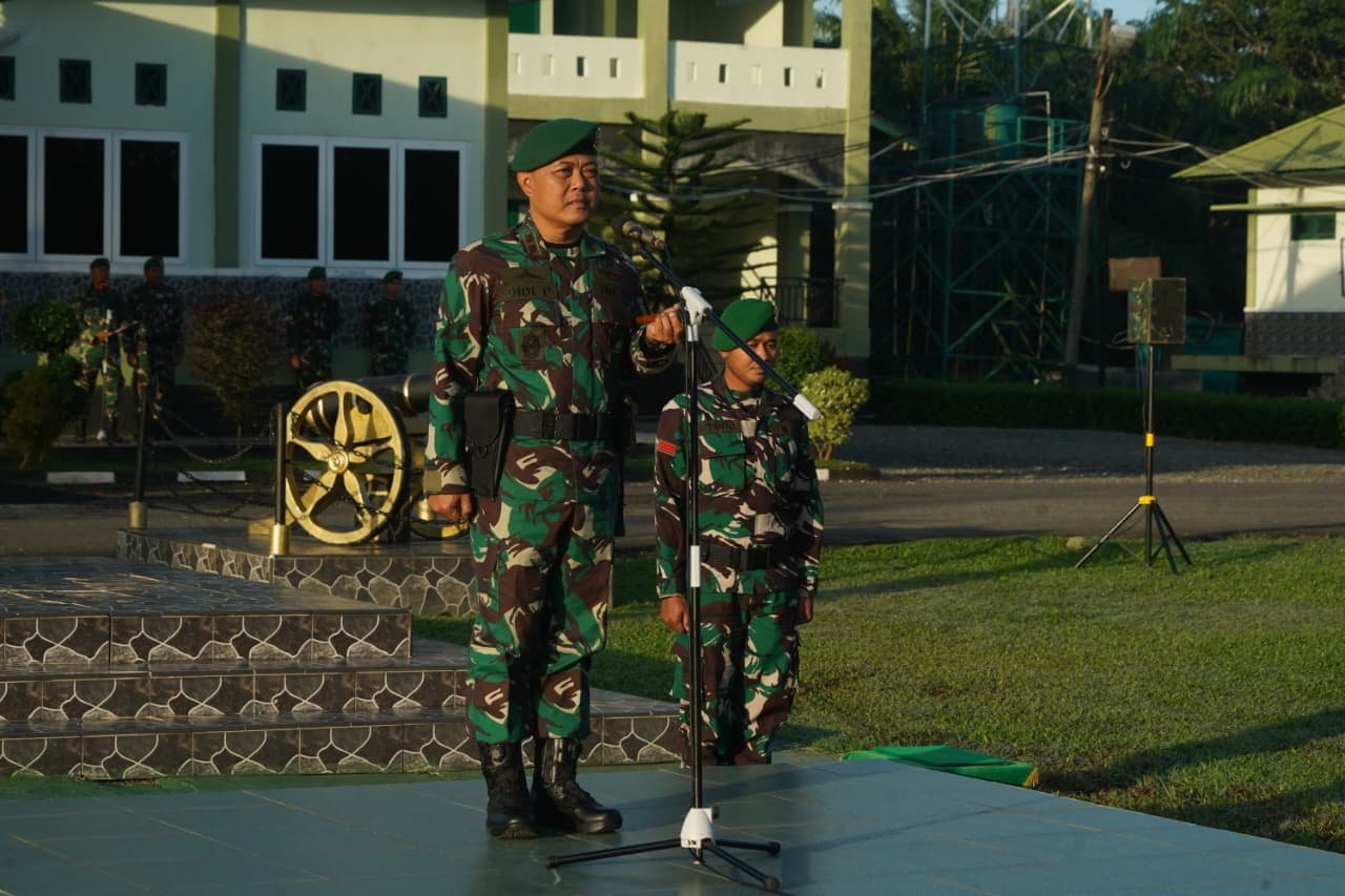 Meulaboh – Korem 012/Teuku Umar menggelar Upacara Bendera Mingguan sebagai bentuk penghormatan terhadap Sang Merah Putih serta untuk memperkuat semangat nasionalisme dan disiplin prajurit.
