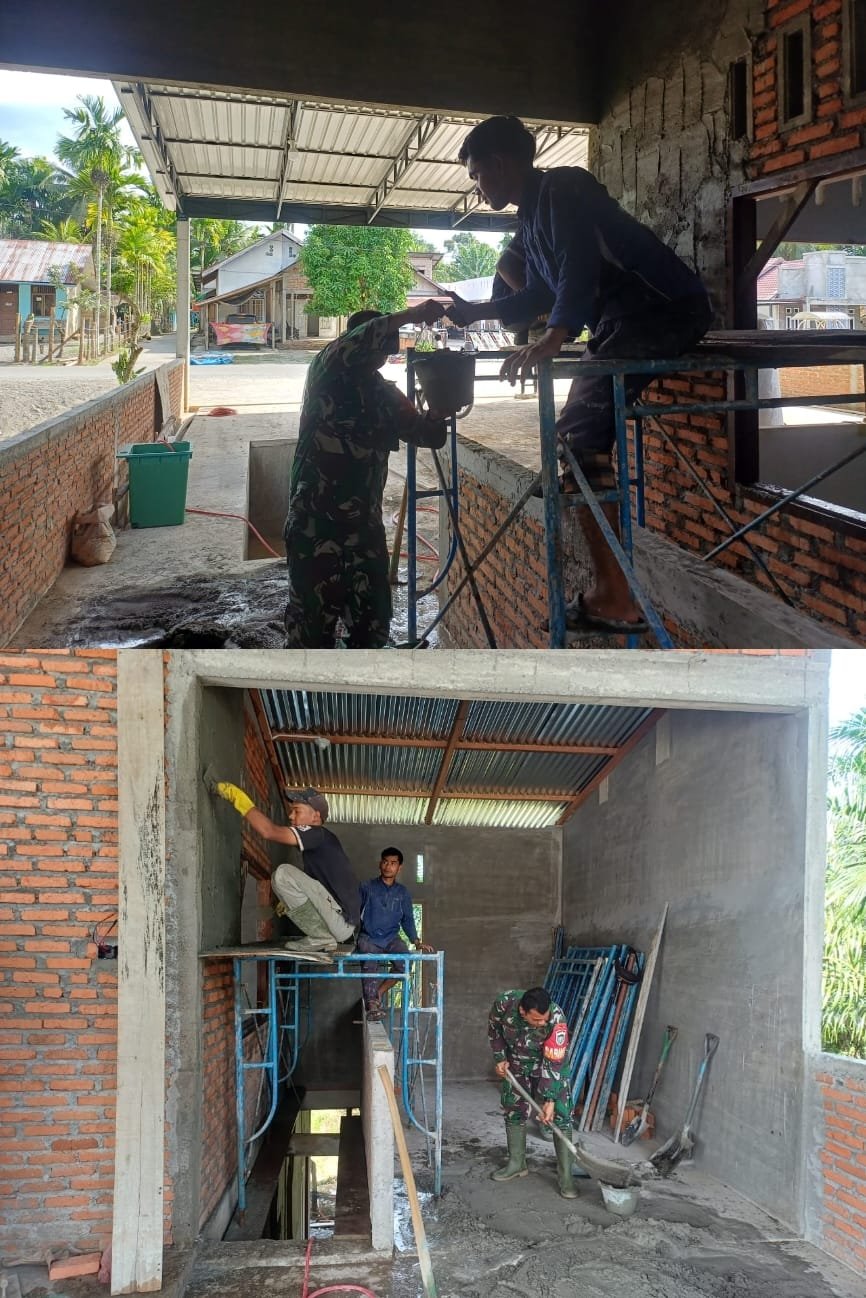 ACEH BARAT – Guna mempercepat pembangunan di wilayah teritorial sekaligus mewujudkan tempat tinggal yang layak huni, Babinsa Koramil 04/Mrb Kodim 0105/Abar, Kopka Dedi Irawan, berbekal niat tulus ikhlas membantu proses pembangunan rumah milik salah satu warga binaan yang tengah memasuki tahapan pemlasteran dinding di Desa Mesjid Tuha, Kecamatan Meureubo, Jumat (6/2/2026).
