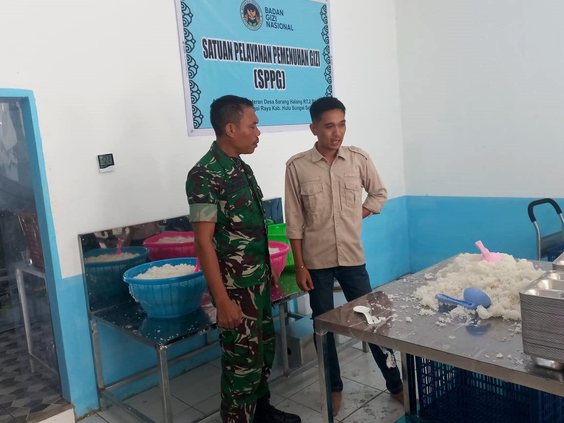 Dalam rangka mendukung program MBG, Babinsa berkolaborasi dengan personil Satuan Pelayanan Pemenuhan Gizi (SPPG) dalam melaksanakan pemantauan dan pengawasan unit dapur yang bertugas memproduksi dan mendistribusikan makanan bergizi. Yayasan Ar Rahman yang berkedudukan di Desa Sarang Halang yang telah memproduksi 2563 porsi makanan bergizi untuk memenuhi target sementara yang akan disalurkan kepada siswa-siswi setingkat SD hingga SMA sederajat di wilayah Kecamatan Sungai Raya dan target porsi tersebut akan terus bertambah.