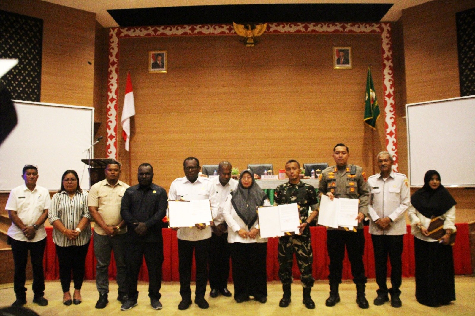 MERAUKE – Pemkab Merauke melaksanakan kegiatan Pembentukan Satgas Makanan Bergizi Gratis (MBG) sekaligus penandatanganan Perjanjian Kerja Sama (PKS) pendampingan TNI-Polri pada satuan pendidikan serta arahan teknis terkait kesiapan lahan pembangunan Sekolah Rakyat. Acara berlangsung di Ruang Rapat Auditorium Thobias Mbearme, Kantor Bupati Merauke Jln. Brawijaya Kota Merauke yang dipimpin langsung oleh Bupati Merauke Yoseph Bladib Gebze, S.H., LL.M. Rabu (3/9/2025).
