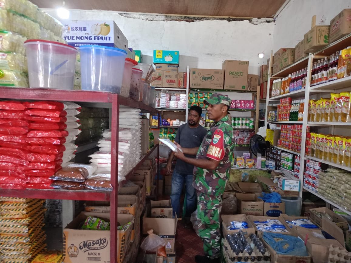 ACEH JAYA – Babinsa Koramil 01/Jaya Kodim 0114/Aceh Jaya melaksanakan pengecekan harga kebutuhan pokok di wilayah Kecamatan Jaya pada Kamis (13/11/2025). Kegiatan ini dilakukan sebagai upaya memantau stabilitas harga sembako sekaligus memastikan ketersediaan bahan pangan bagi masyarakat tetap aman.