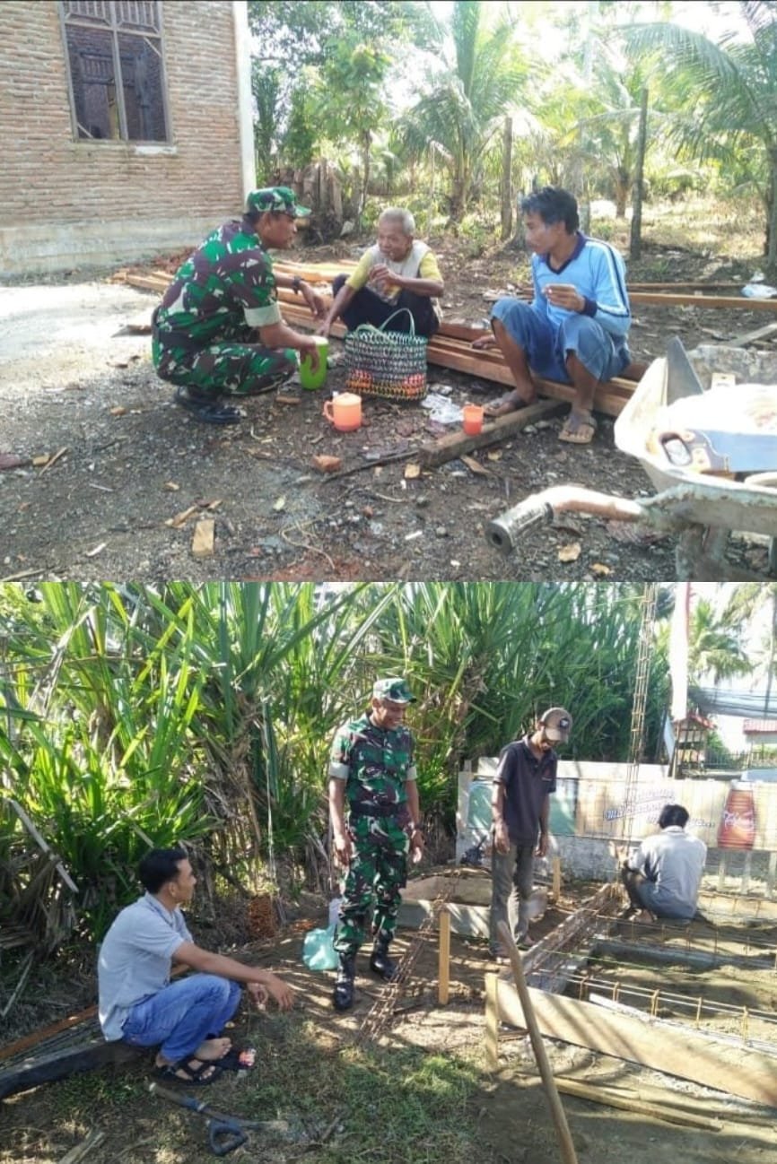 ACEH BARAT – Babinsa Koramil 04/Mrb Kodim 0105/Abar, Sertu Azhari, menjalin Komunikasi Sosial dengan para pekerja bangunan sebagai implementasi Binter sekaligus mengingatkan faktor keselamatan saat beraktivitas membangun rumah milik salah satu warga binaan yang berlokasi di Desa Peunaga Rayeuk, Kecamatan Meureubo, Kamis (29/1/2026).