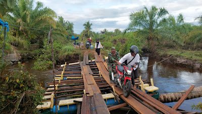Sejak pagi, Pelda Safii bersama beberapa personel tampak berdiri tegak di sisi jembatan darurat yang terbuat dari susunan kayu dan besi. Meski sederhana, jembatan itu menjadi nadi utama pergerakan warga yang hendak menuju ibu kota kabupaten untuk bekerja, berobat, maupun mengurus berbagai keperluan. Dengan sigap, para prajurit membantu warga yang kesulitan menyeberang, terutama lansia, ibu hamil, pelajar, dan pengendara roda dua yang harus ekstra hati-hati saat melintas.
