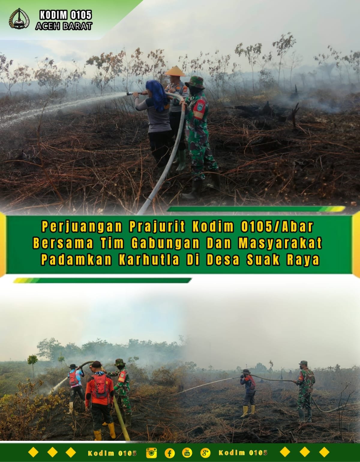 ACEH BARAT – Dengan penuh perjuangan dan cuaca yang cukup panas, prajurit Kodim 0105/Abar bersama tim gabungan dan masyarakat saling bahu-membahu berupaya memadamkan kebakaran hutan dan lahan (Karhutla) yang terjadi di Desa Suak Raya, Kecamatan Johan Pahlawan, Selasa (20/01/2026).