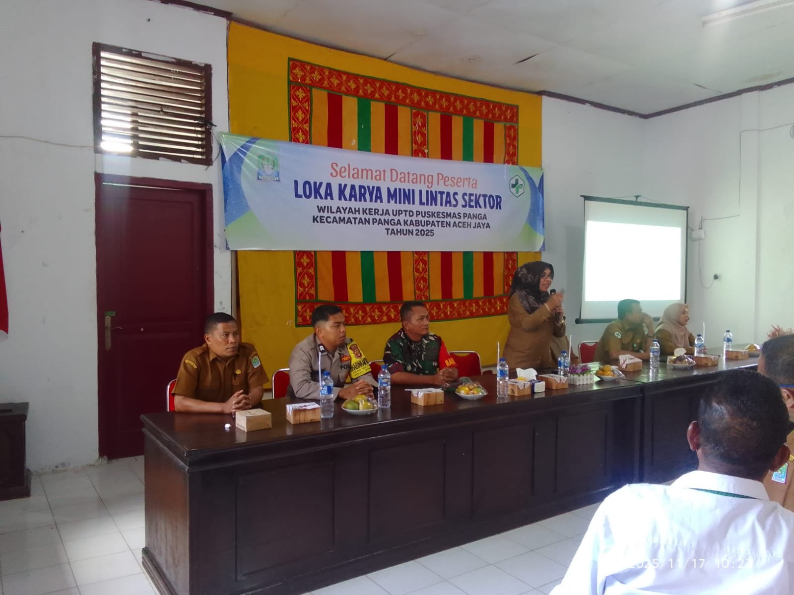 ACEH JAYA – Lokakarya mini lintas sektor bidang kesehatan UPTD Puskesmas Panga Tahun 2025 digelar di Aula Kantor Camat Panga, Desa Kuta Tuha, pada Senin (17/11/2025), pukul 10.00 WIB. Pertemuan ini menjadi sarana koordinasi antarlembaga untuk memperkuat penyelenggaraan pelayanan kesehatan di seluruh desa dalam wilayah Kecamatan Panga.
