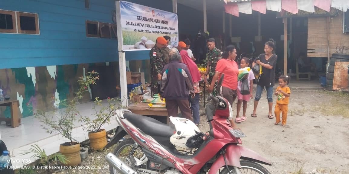 Nabire, Papua Tengah, 11 September 2025 — Satgas Pengamanan Perbatasan (Pamtas) RI–PNG Korpasgat Pos Nabire bekerja sama dengan Bulog Nabire menggelar Gerakan Pangan Murah (GPM) sebagai upaya membantu masyarakat menghadapi kenaikan harga kebutuhan pokok. Kegiatan ini telah dimulai sejak 9 September 2025 dan dipusatkan di Pos Satgas Korpasgat Nabire.