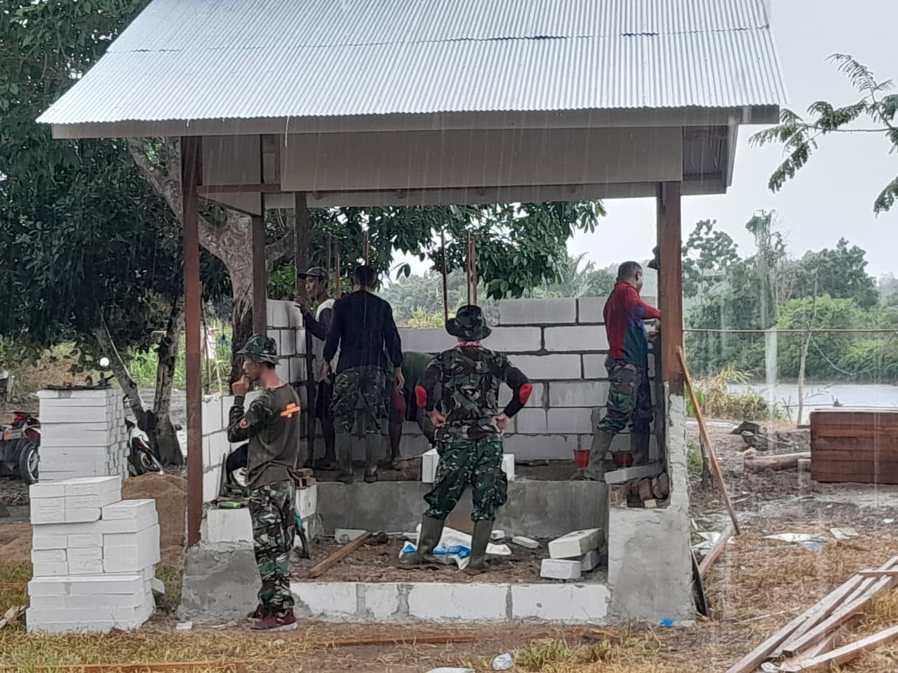 Peltu Idham, anggota Satgas TMMD yang memimpin pembangunan fisik tambahan, menyampaikan, Kami terus bekerja maksimal agar poskamling segera bisa digunakan oleh warga.
