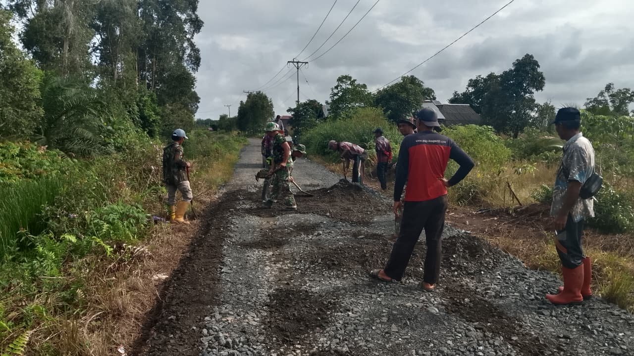 BARITO KUALA – Pengerasan jalan yang menjadi salah satu sasaran utama dalam program TNI Manunggal Membangun Desa (TMMD) Ke-126 Kodim 1005/Barito Kuala terus dikebut di Desa Tumih, Kecamatan Wanaraya.