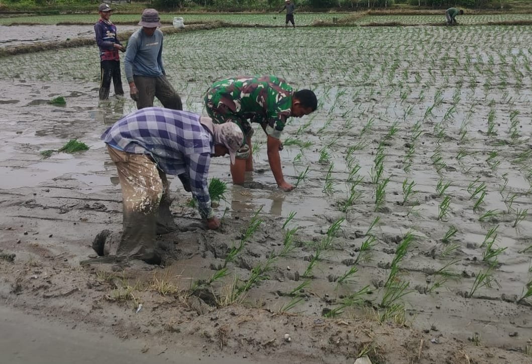 Membantu warga binaan menanam padi ini merupakan wujud dukungan TNI, khususnya prajurit kewilayahan yaitu Babinsa, dalam mendukung ketahanan pangan. Dengan penuh semangat, Babinsa Serda Iwan Setiawan ikut serta terjun langsung ke sawah membantu para petani desa binaan saat menanam padi. Hal tersebut merupakan rutinitas yang dilakukan oleh Babinsa kepada para petani di desa binaannya.