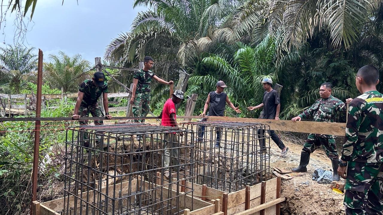 Pembangunan jembatan gantung tersebut dilakukan secara gotong royong dengan melibatkan personel TNI dan warga setempat. Dengan penuh semangat dan tanpa kenal lelah, mereka bahu-membahu mengangkut material, merakit rangka jembatan, hingga memasang konstruksi agar kokoh dan aman digunakan.