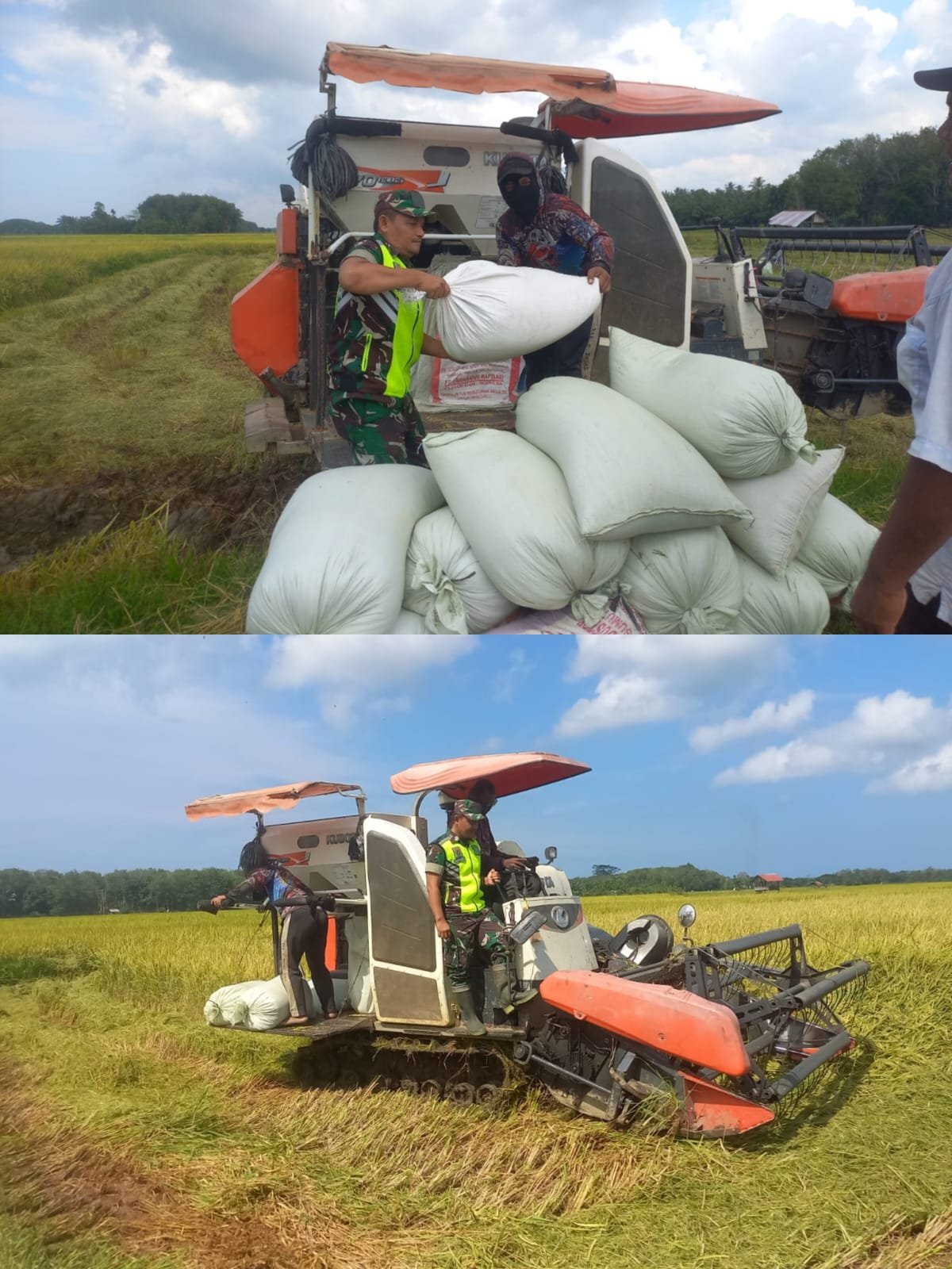 ACEH BARAT – Semangat di bulan suci Ramadan tidak menyurutkan semangat Babinsa dalam mendampingi masyarakat. Babinsa Koramil 08/Arongan Lambalek Kodim 0105/Aceh Barat, Sertu Maryanto, turut membantu warga mengangkut padi hasil panen menggunakan mesin combine harvester di Desa Cot Buloh, Kecamatan Arongan Lambalek, Kabupaten Aceh Barat, Sabtu (14/03/2026).