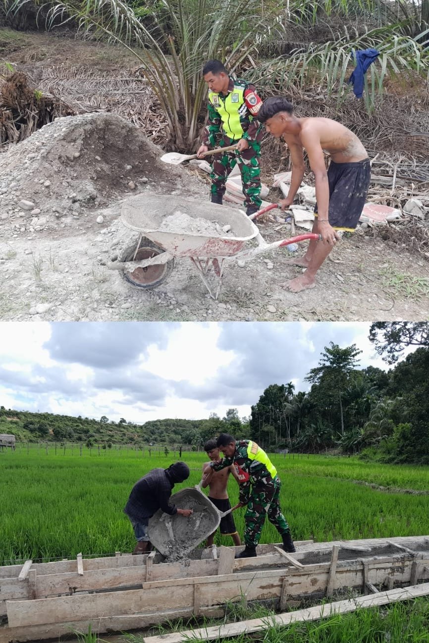 ACEH BARAT – Sebagai wujud kepedulian terhadap kesejahteraan masyarakat, Babinsa Koramil 11/WT, Serda Yusfendi, turut membantu warga dalam pembuatan saluran irigasi sawah di Desa Kubu Capang, Kecamatan Woyla Timur, Kabupaten Aceh Barat, Sabtu (10/01/2026).