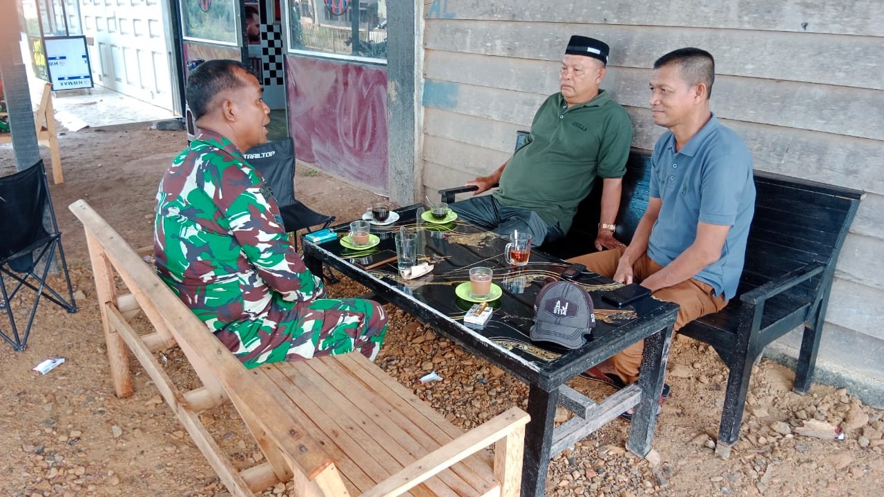 ACEH JAYA — Babinsa Posramil Darul Hikmah Kodim 0114/Aceh Jaya, Sertu Haslimin, melaksanakan komunikasi sosial (komsos) bersama Pak Keuchik dan Ketua Pemuda Desa Chot Pange, Kecamatan Darul Hikmah, Jumat (13/02/2026).