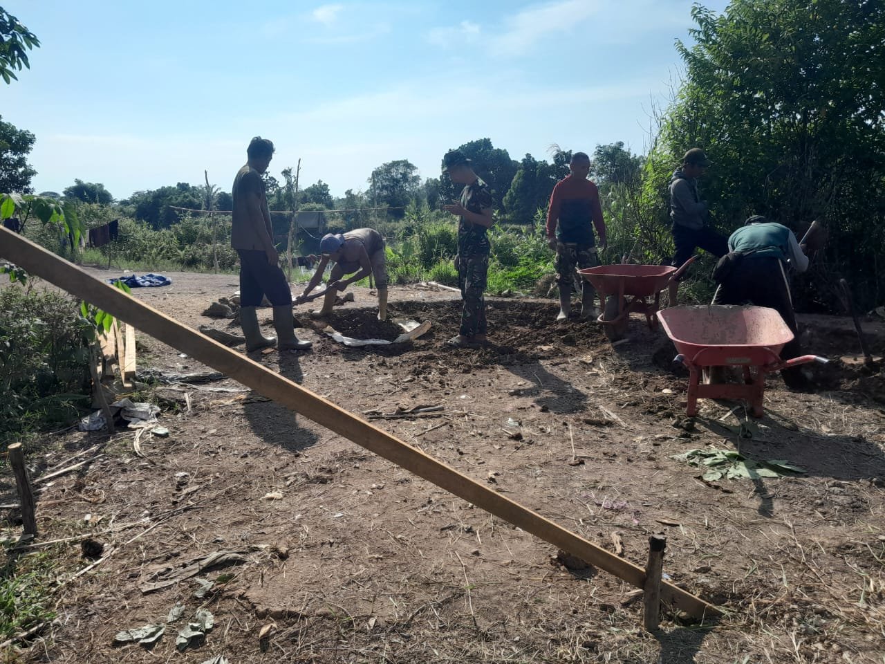 BARITO KUALA – Suasana kebersamaan terasa kental di Desa Tumih, Kecamatan Wanaraya. Warga desa tampak antusias ikut terlibat saat anggota Satgas TMMD Ke-126 Kodim 1005/Barito Kuala mengambil material tanah timbunan secara manual untuk pembangunan pos kamling.