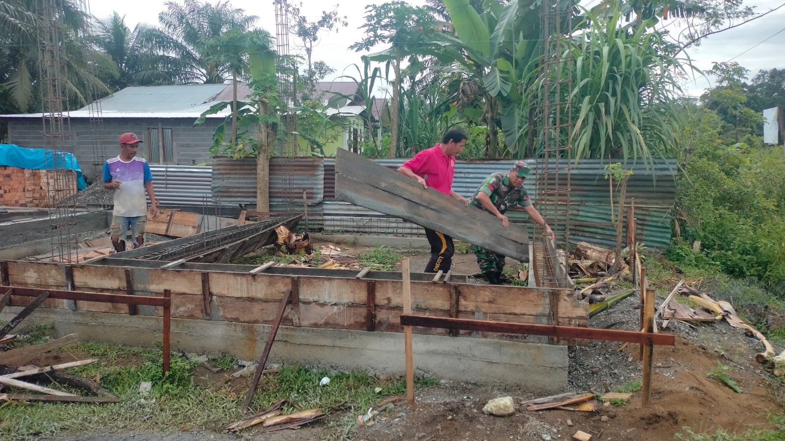 Zulkifli (44), pemilik rumah, menyampaikan rasa syukur atas kepedulian Babinsa. Ia mengaku bantuan tersebut sangat berarti karena tanpa dukungan tenaga, proses pembuatan pondasi dipastikan akan memakan waktu lebih lama.
