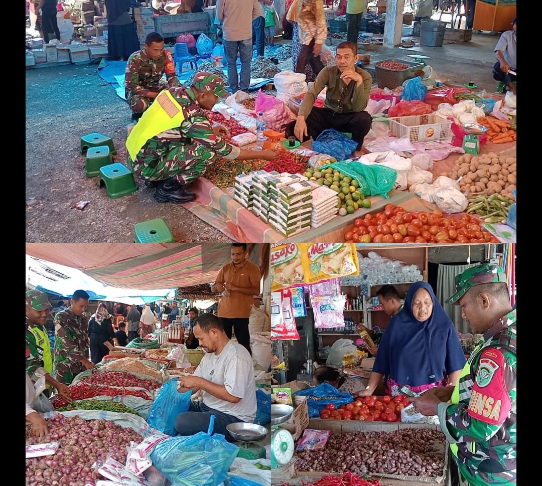 Pada kegiatan monitoring yang dilakukan sejak pagi hari, Babinsa mendatangi sejumlah kios, warung sembako, dan pasar tradisional untuk memeriksa ketersediaan barang-barang penting seperti beras, minyak goreng, gula, telur, mi instan, serta kebutuhan lainnya. Selain pengecekan fisik, Babinsa juga berdialog langsung dengan para pedagang dan warga untuk mengetahui kondisi perputaran stok pasca bencana.