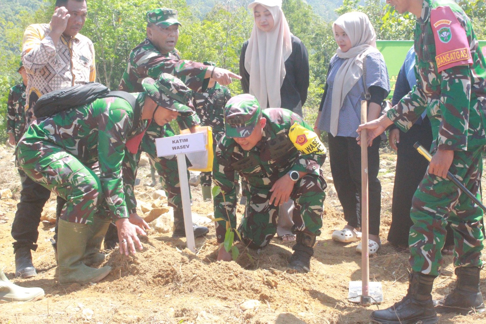 Kegiatan tersebut menjadi bagian dari rangkaian kunjungan Tim Pengawasan dan Evaluasi (Wasev) yang dipimpin oleh Kolonel Inf Ahmad Azis. Dalam kesempatan itu, tim turut terjun langsung menanam pohon bersama personel Satgas TMMD dan masyarakat setempat.