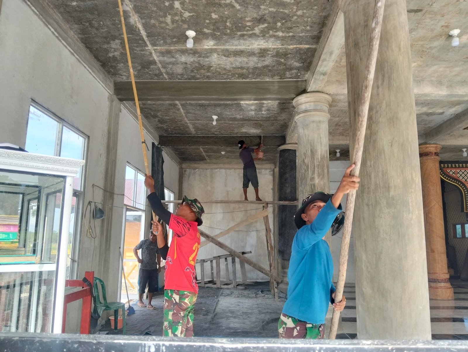 Suasana di sekitar masjid pun terasa berbeda. Aroma cat yang masih segar seakan menjadi pertanda bahwa ada harapan yang sedang diperbarui. Warna yang perlahan menempel di dinding bukan sekadar lapisan cat, melainkan simbol kepedulian dan semangat kebersamaan antara TNI dan masyarakat.
