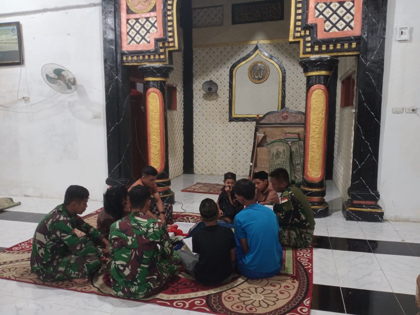 Selama bulan suci Ramadhan, anggota Satgas TMMD melaksanakan tadarus bersama anak-anak di Masjid Baitul Aswad sebagai bentuk pendekatan sosial dan pembinaan masyarakat.