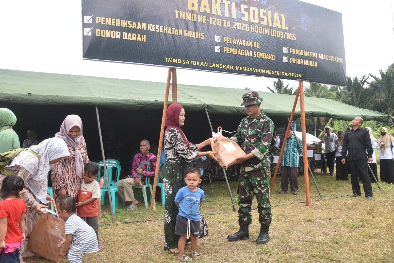 Saat dikonfirmasi, Komandan Kodim 1003/HSS Letkol Inf Ading Priyotantoko selaku Dansatgas TMMD ke 128 menjelaskan bahwa kegiatan Bakti Sosial sengaja digelar di lokasi TMMD pada awal pelaksanaan program. “Ini sebagai wujud kehadiran prajurit TNI Kodim 1003/HSS agar manfaatnya bisa langsung dirasakan oleh masyarakat,” ujarnya.