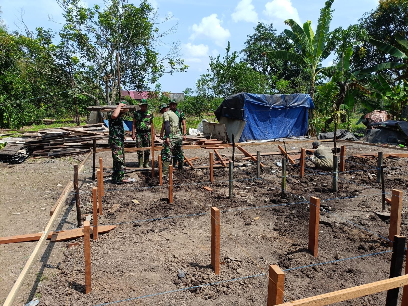 BARITO KUALA – Satu per satu sasaran fisik tambahan dalam program TNI Manunggal Membangun Desa (TMMD) ke-126 Kodim 1005/Barito Kuala mulai menunjukkan hasil nyata. Salah satunya adalah pembangunan rumah tidak layak huni (RTLH) milik Kai Salamun, warga Desa Tumih, Kecamatan Wanaraya, yang kini mulai berdiri kokoh meski masih dalam tahap pengerjaan.