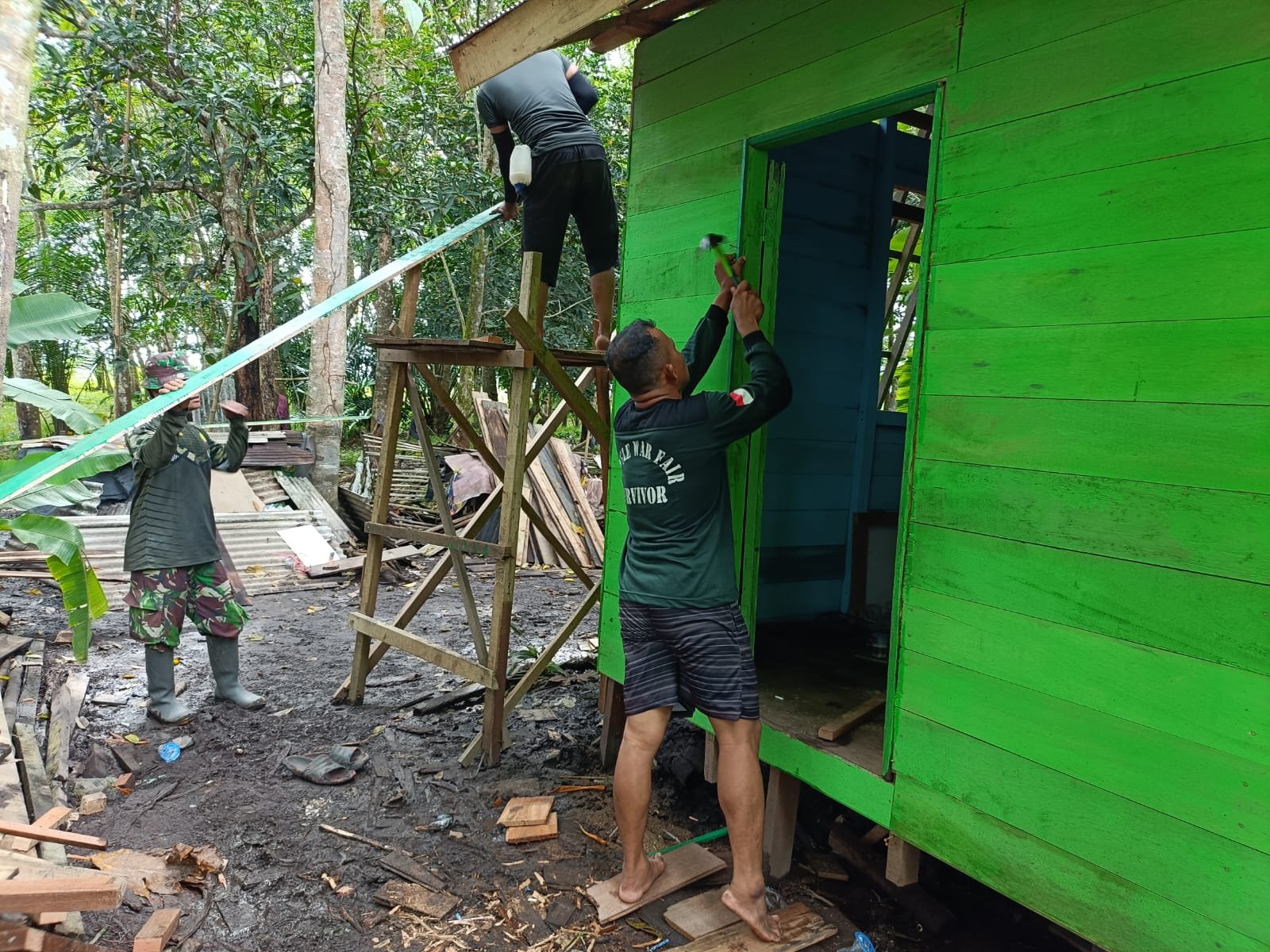 Di tengah suara palu dan aroma cat baru, anggota Satgas terlihat sibuk menyelesaikan bagian akhir. “Ada yang mengecat, ada yang pasang jendela, juga periksa atap,” ujar Kapten Inf Tri Hendro, Dan SSK TMMD Ke-126.