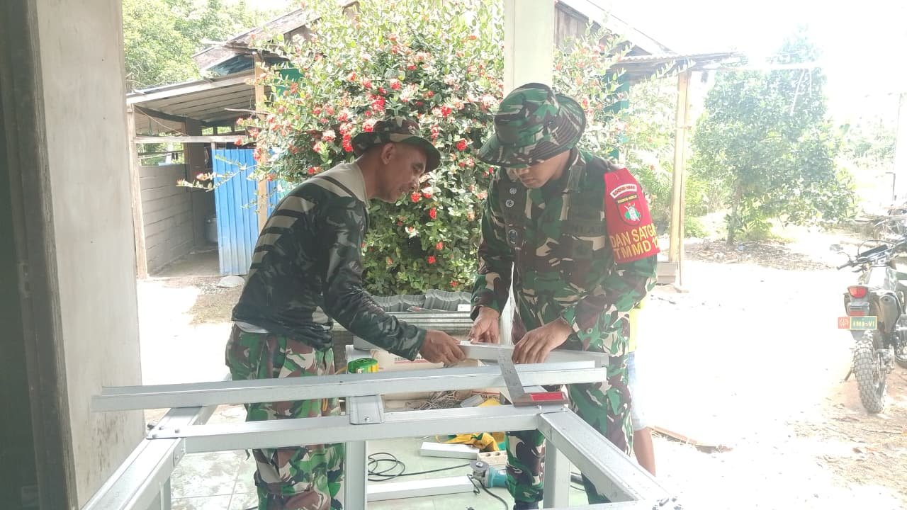 Dengan gerinda di tangannya, Letkol Andika memotong batang demi batang baja ringan yang akan dijadikan kerangka tower pengeras suara di Mushola Nurul Ikhsan, Desa Tumih, Kecamatan Wanaraya. Gerakannya mantap, terukur, dan penuh kehati-hatian — seolah setiap potongan logam itu bukan sekadar pekerjaan, tapi bagian dari ibadah.