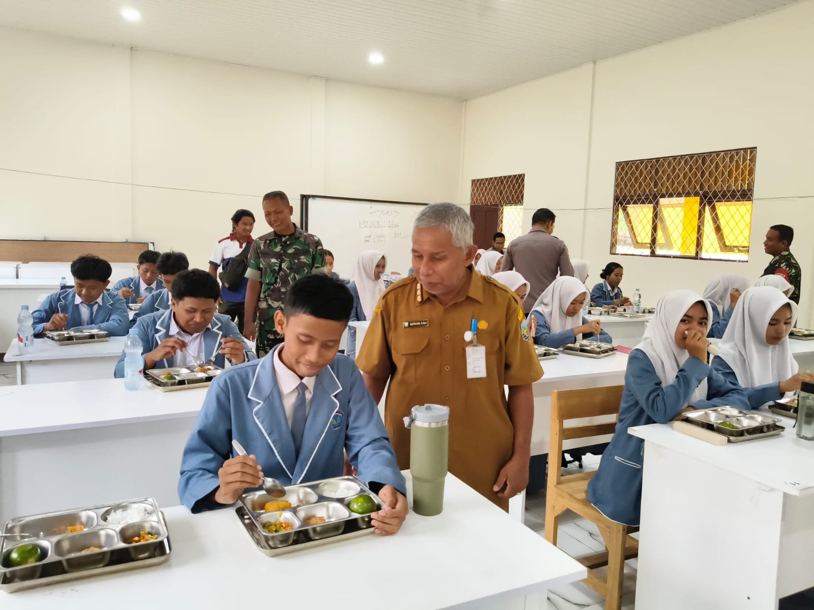 “Program Makan Bergizi Gratis ini sangat bermanfaat bagi siswa, dan kehadiran TNI-Polri merupakan bentuk dukungan penuh dalam menciptakan suasana aman, tertib, serta membantu kelancaran kegiatan,” ujar Danramil.