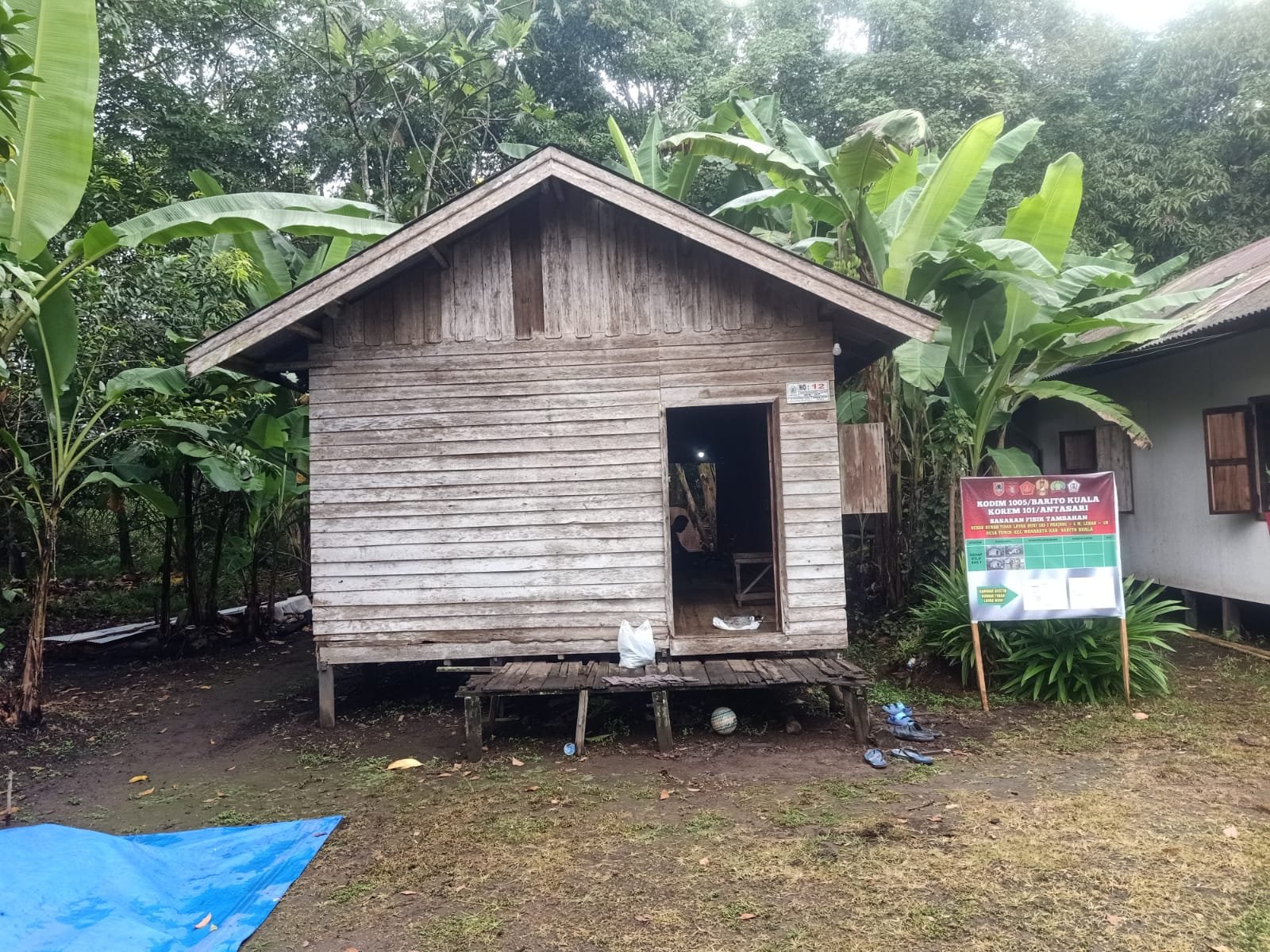 Di tengah rindangnya pepohonan dan lingkungan perdesaan yang asri, berdiri rumah Zaini yang tampak mulai menua. Dinding papan yang kusam, lantai yang mulai rapuh, dan atap seng yang bocor menjadi saksi betapa beratnya kehidupan warga sederhana ini. Namun kini, senyum bahagia mulai merekah di wajahnya saat prajurit TNI datang membawa harapan baru.