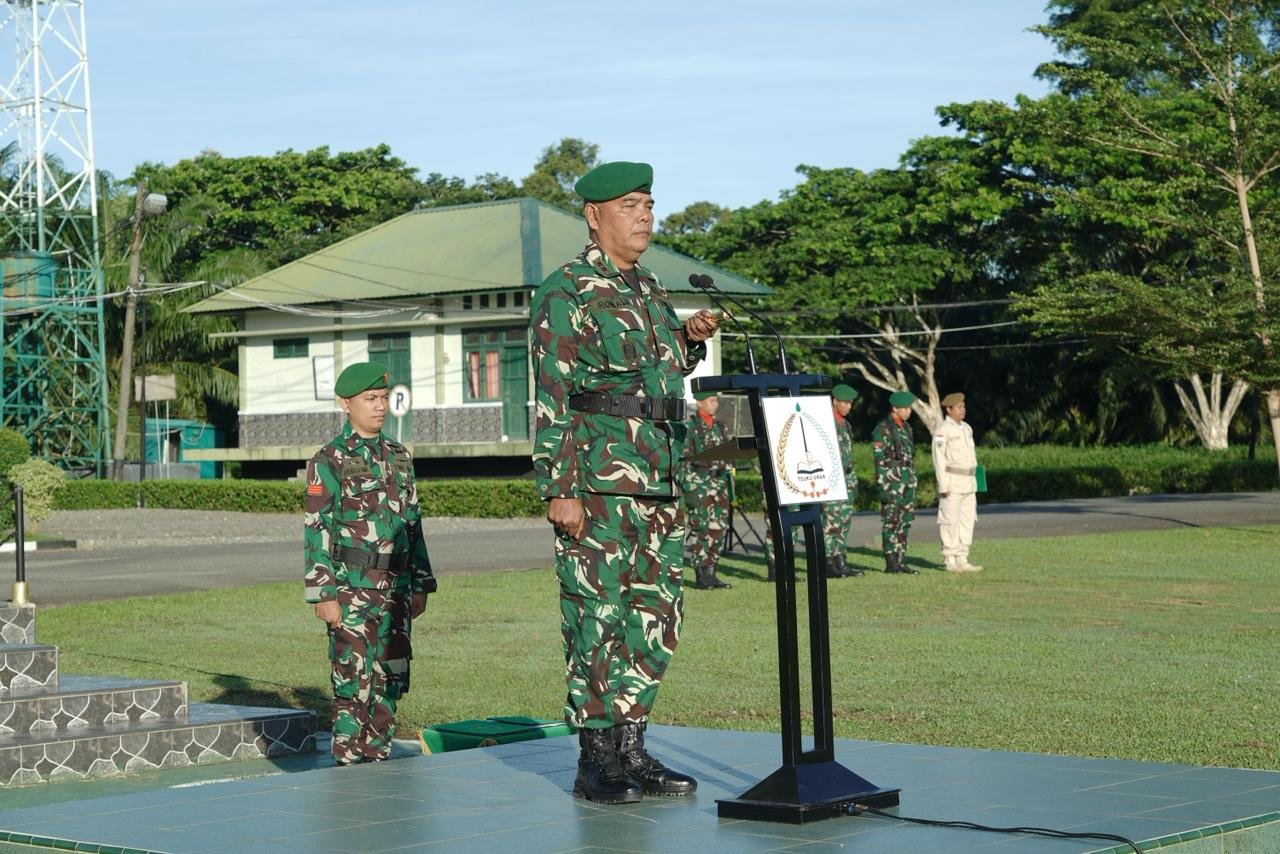 Meulaboh – Korem 012/Teuku Umar menggelar upacara bendera bulanan di Lapangan Makorem 012/TU yang berlangsung dengan khidmat dan tertib. Upacara ini diikuti oleh seluruh prajurit, PNS, serta unsur satuan jajaran Korem 012/TU, Senin (20/04/2026).