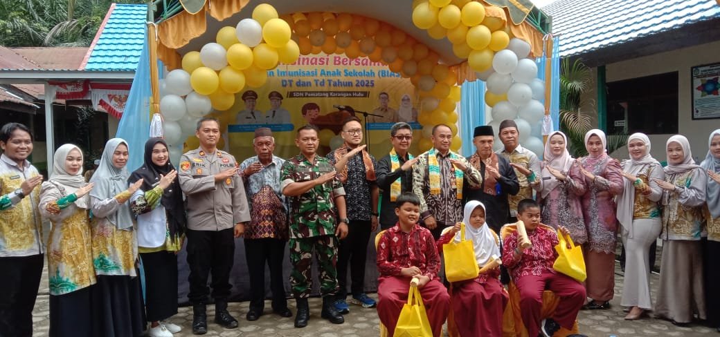 Tapin — Pelaksanaan Vaksinasi Bersama BIAS (Bulan Imunisasi Anak Sekolah) dengan jenis vaksin DT (Difteri–Tetanus) dan TD (Tetanus–Difteri) digelar di SDN Pematang Karangan Hulu, Kecamatan Tapin Tengah, Kamis (27/11). Kegiatan ini mendapat dukungan penuh dari berbagai unsur Forkopimda, termasuk jajaran TNI melalui Kodim 1010/Tapin.
