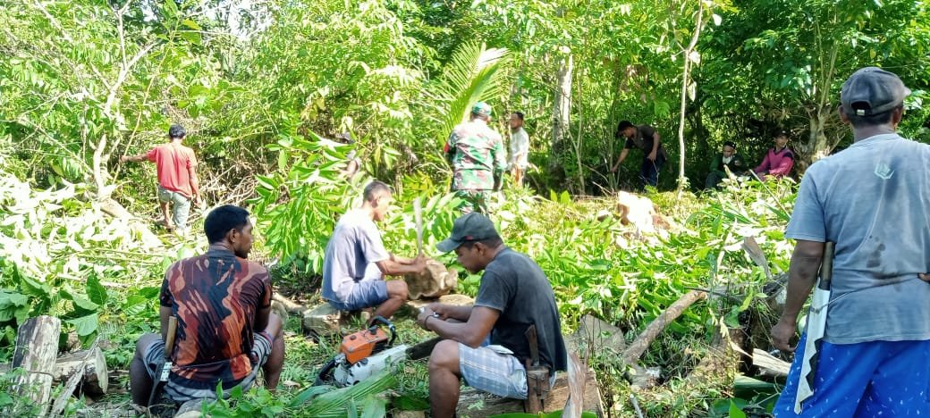 HALMAHERA SELATAN – Babinsa bersama warga masyarakat melaksanakan kegiatan kerja bakti sosial membersihkan jalan dan parit serta membersihkan halaman di lingkungan.