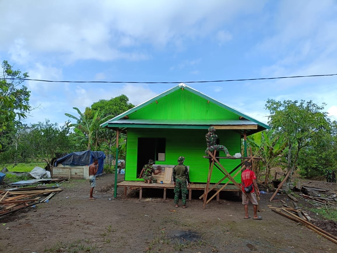 Prajurit Satgas TMMD bersama warga setempat bahu-membahu menyelesaikan pembangunan rumah tersebut. Proses yang dilakukan dengan semangat kebersamaan ini mencerminkan nilai gotong royong dan kedekatan TNI dengan masyarakat pedesaan.
