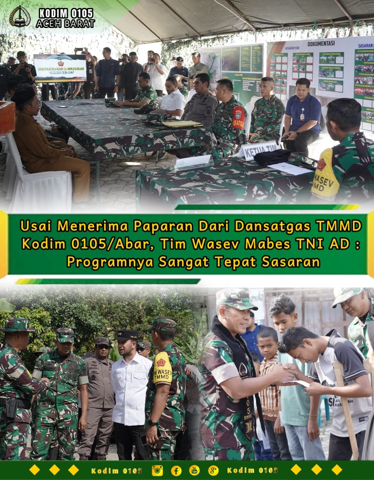 Di Posko Taktis, Ketua Tim Wasev menegaskan bahwa pengawasan bukan sekadar formalitas, melainkan alat ukur agar setiap sasaran fisik maupun non fisik berjalan tepat waktu, tepat guna, dan tepat administrasi. Ia menekankan program unggulan Kepala Staf Angkatan Darat seperti RTLH, MCK, dan Manunggal Air Bersih harus benar-benar memberi manfaat langsung.