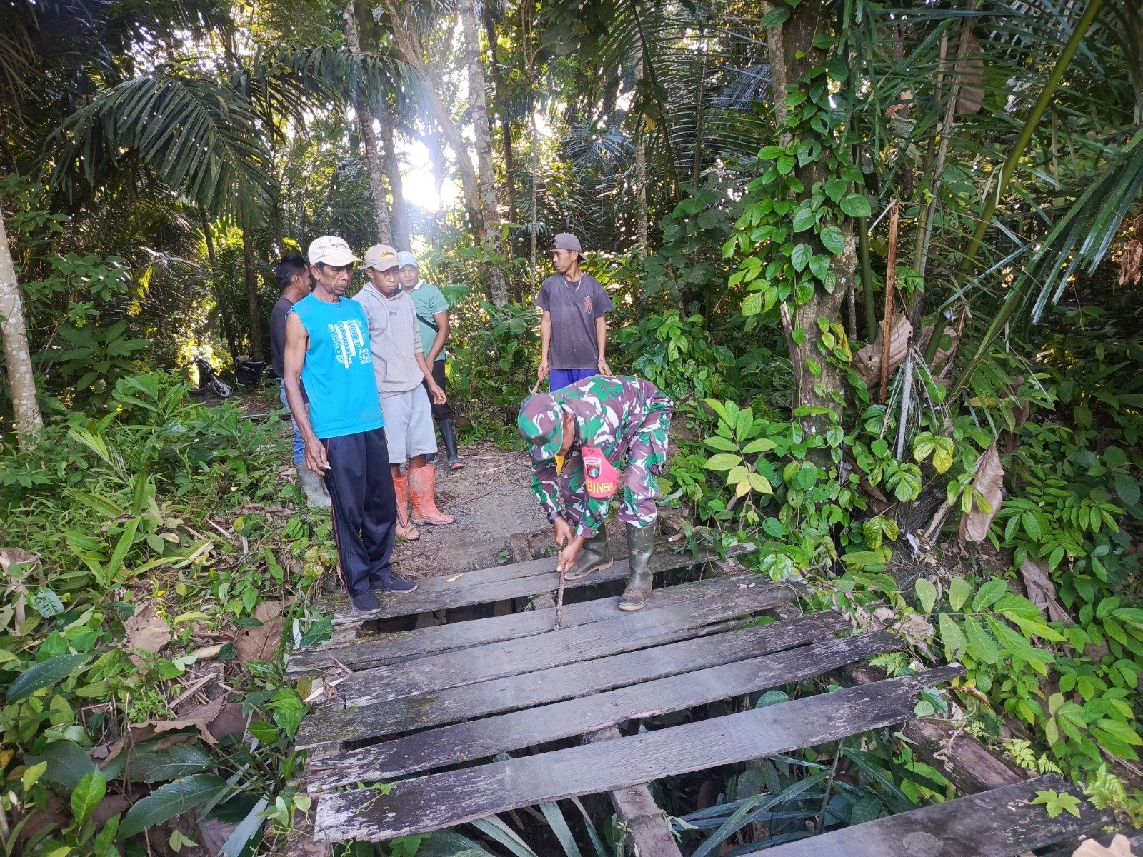 “Jembatan rapuh dimakan usia sangat mengancam keselamatan masyarakat yang melintas,” jelas Koptu Sudiman di sela-sela aktivitas gotong royong pembangunan. “